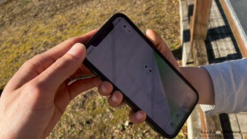 キャンプサイトに残った長女の位置を「探す」アプリで位置を確認しました。