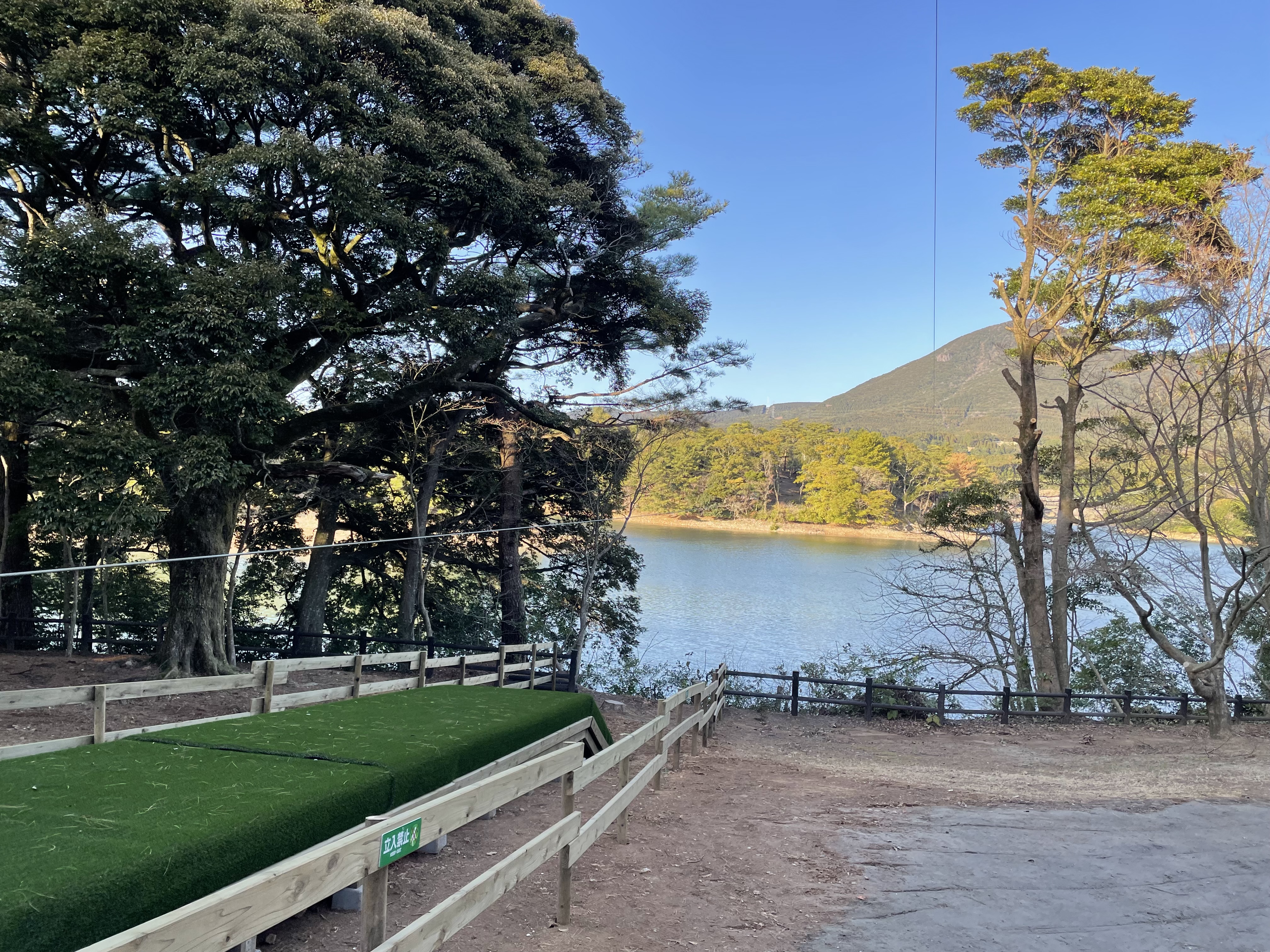 東サイトからは、湖の向こうに広がる景色とともに、