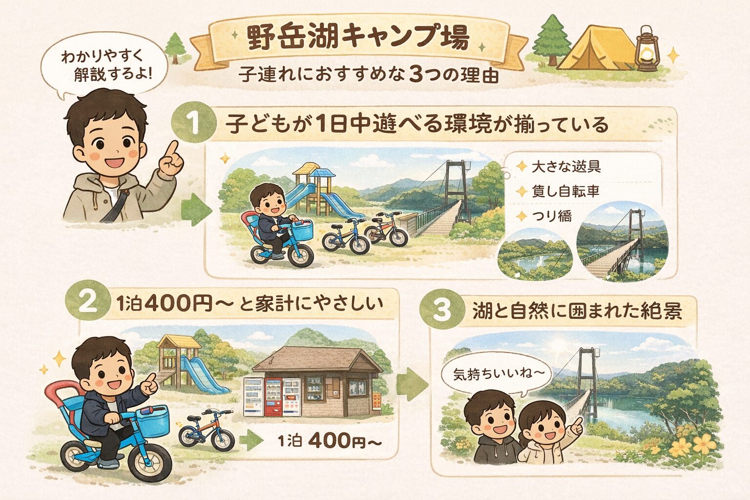 👉️この3つに当てはまるファミリーにぴったりのキャンプ場です。