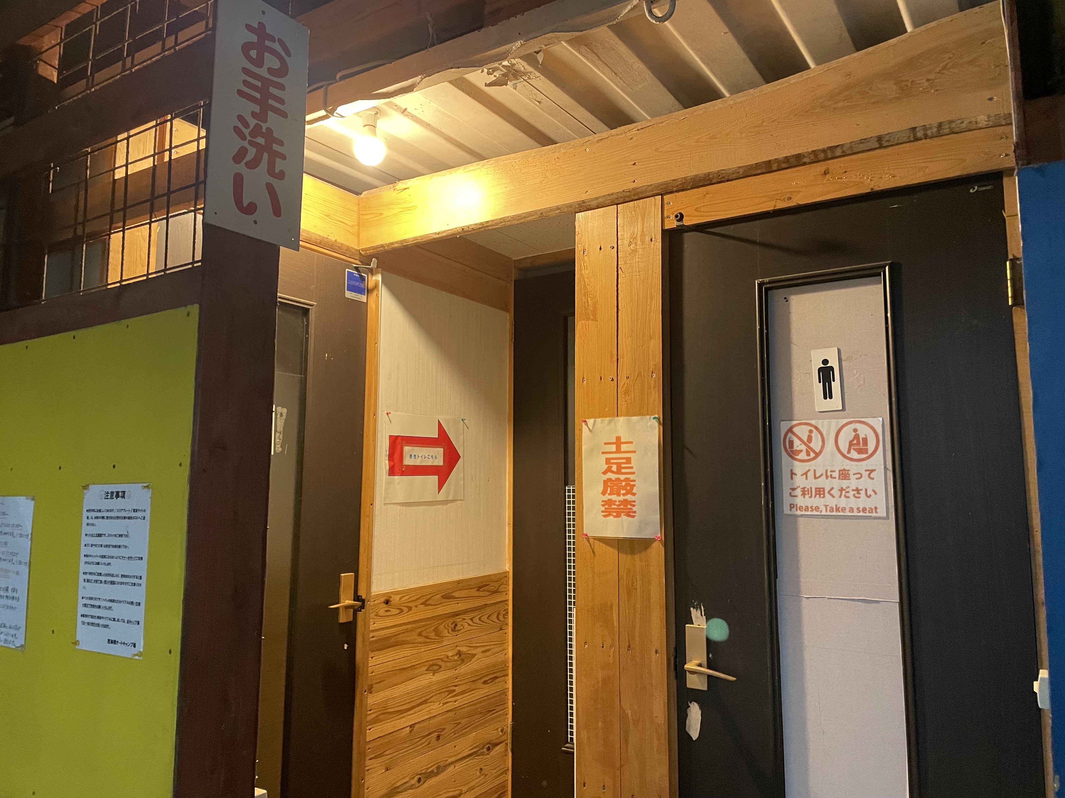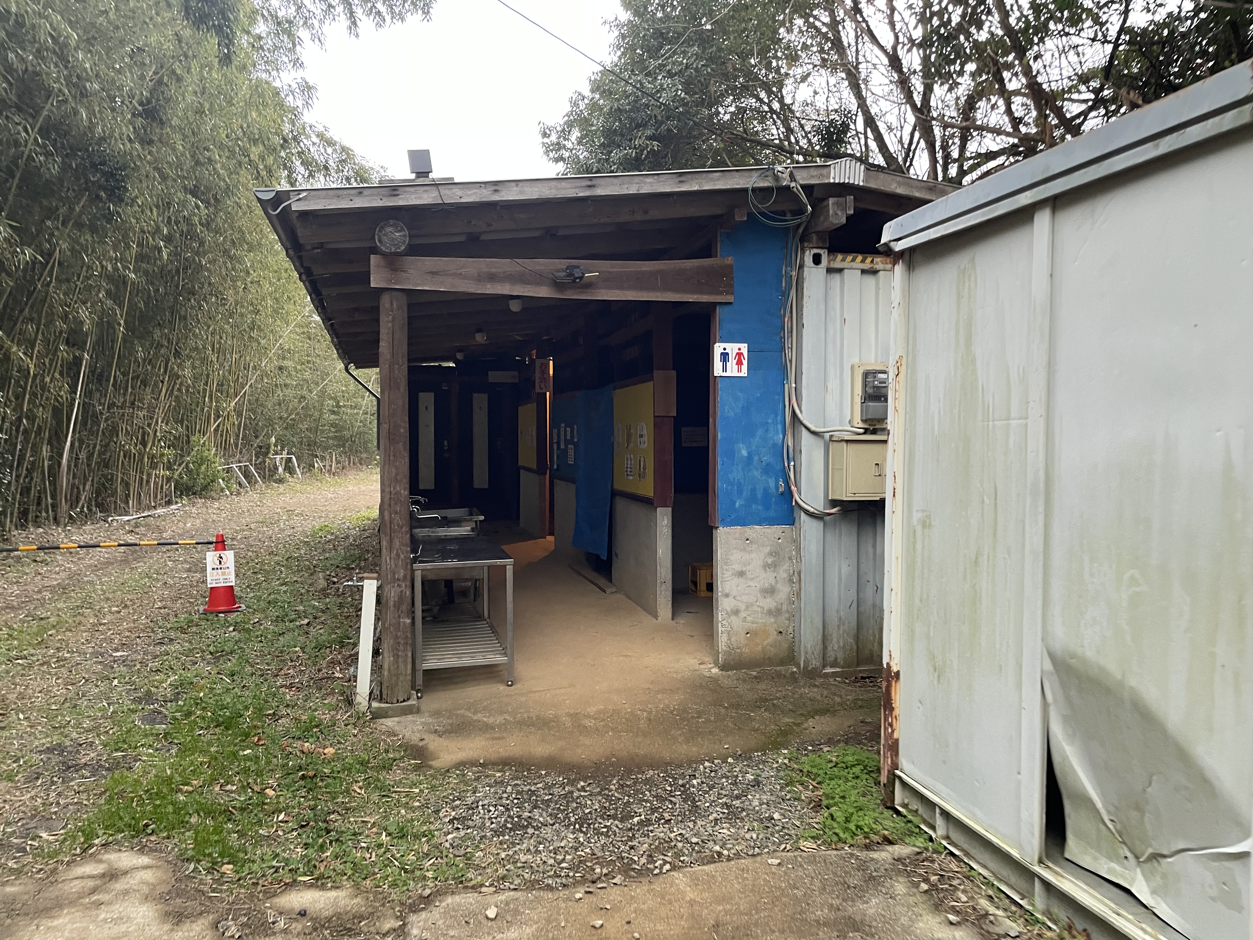 第1サイト近くにあるトイレは、第1サイトから坂を下りた場所にあるサニタリー棟の中にあります。
